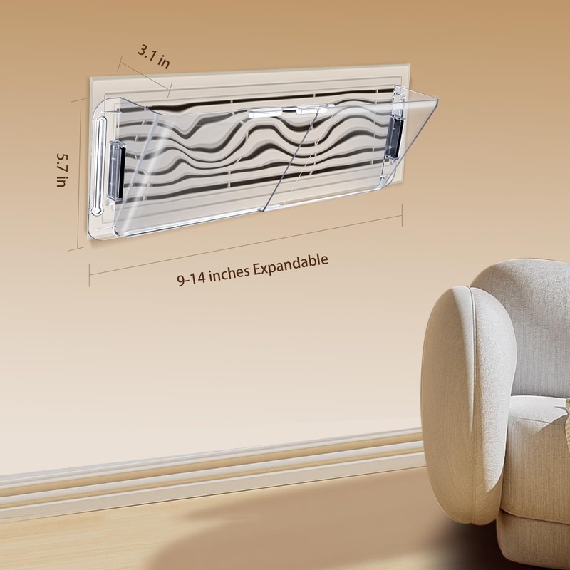 Adjustable Air Vent Deflector for AC,Ceiling, Wall, Floor, 9” to 14” Wide, Baseboard - Magnetic, Heat & Wind Blocker,Vent Covers for Central Conditioner, Heating, Refrigeration, Builder,2 Pack