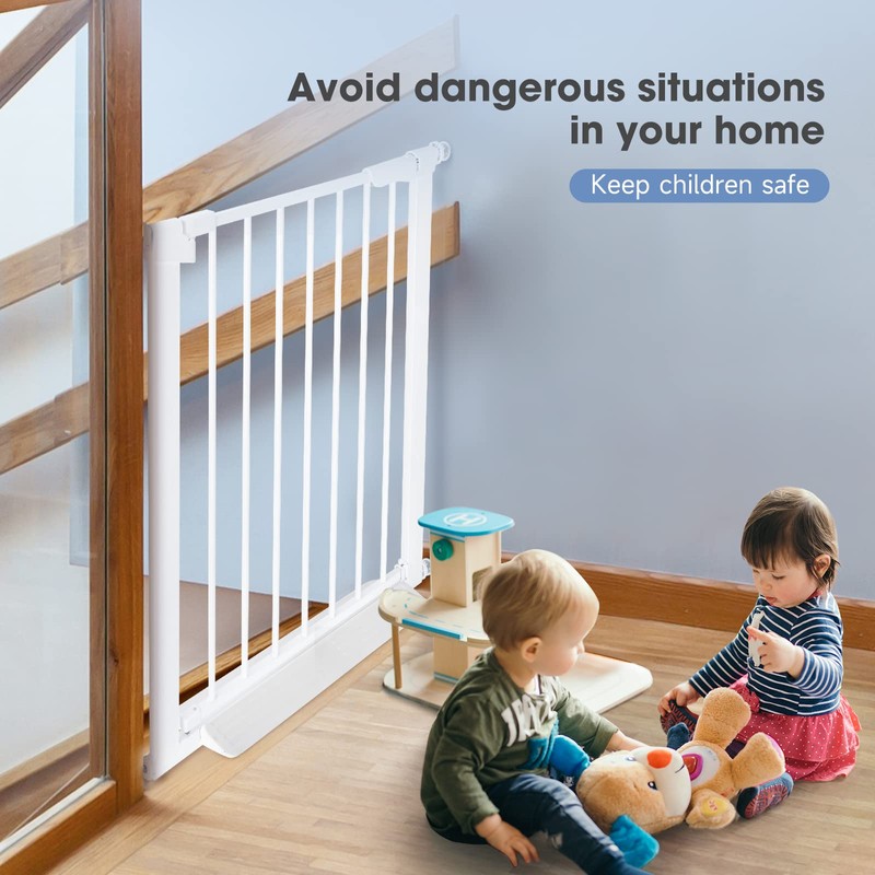 - Baby gate Product Information:white baby gate is a extra wide baby gate for large openings, the width of the baby door is 74 cm, The Extra high Baby gate is 30.71 in high. Metal baby door is strong and durable. Doors and extensions are combined in different sizes. Before buying a baby gate, measure the width of the interior or door of the house for the appropriate size range.