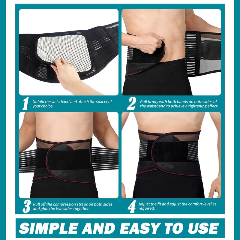 - 【Removable Lumbar Pads】 There are 3 enclosed lumbar pads: heated pad, woolen pad, and mesh pad. Each functions differently for you to better use the back support belt for men.