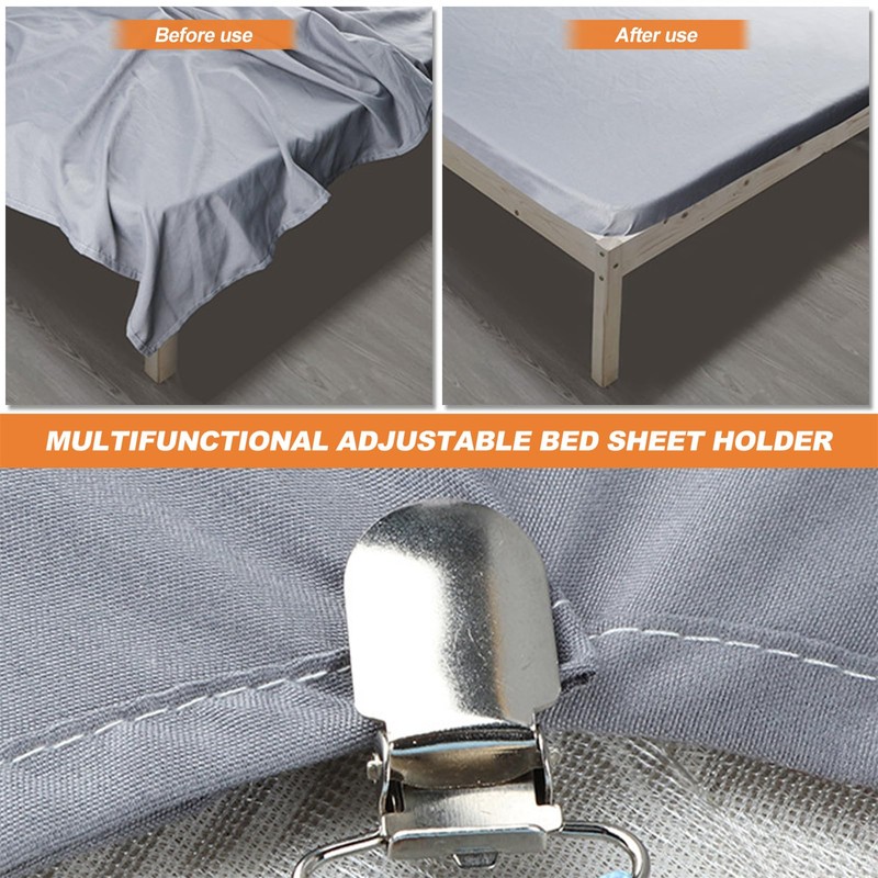 - Easy to Use: The bed fitted sheet holder is easy to use, just clip one end of the mattress strap clips to one corner of the sheet and the other end to the opposite corner, then it can keep your fitted sheets from sliding off the corners