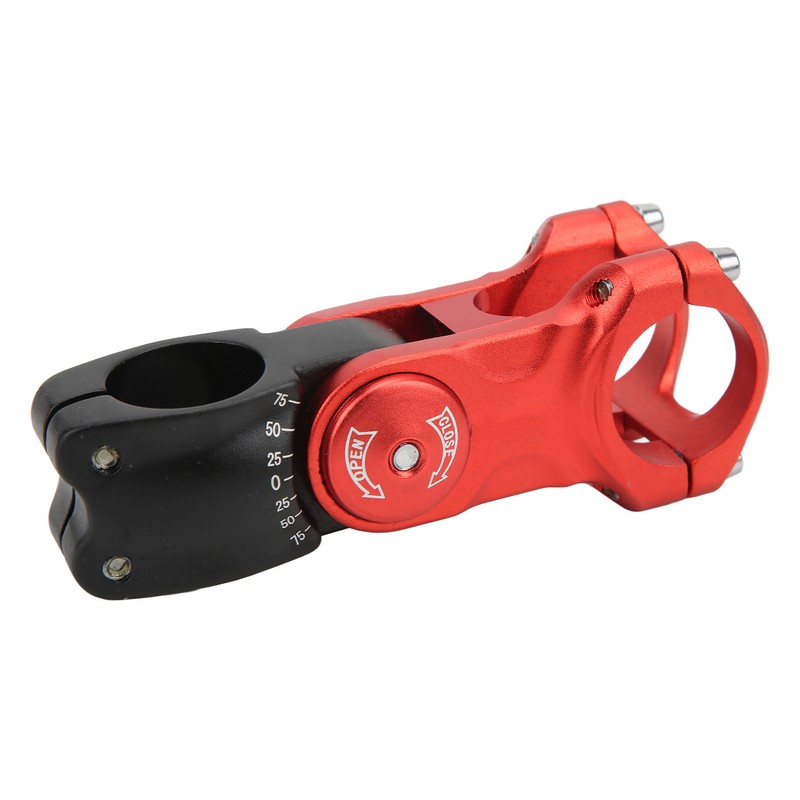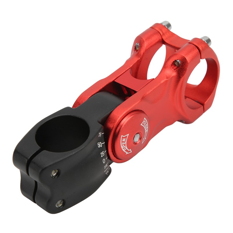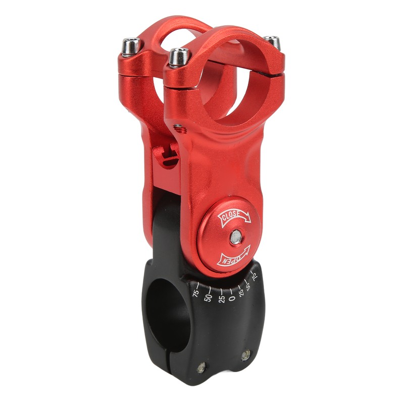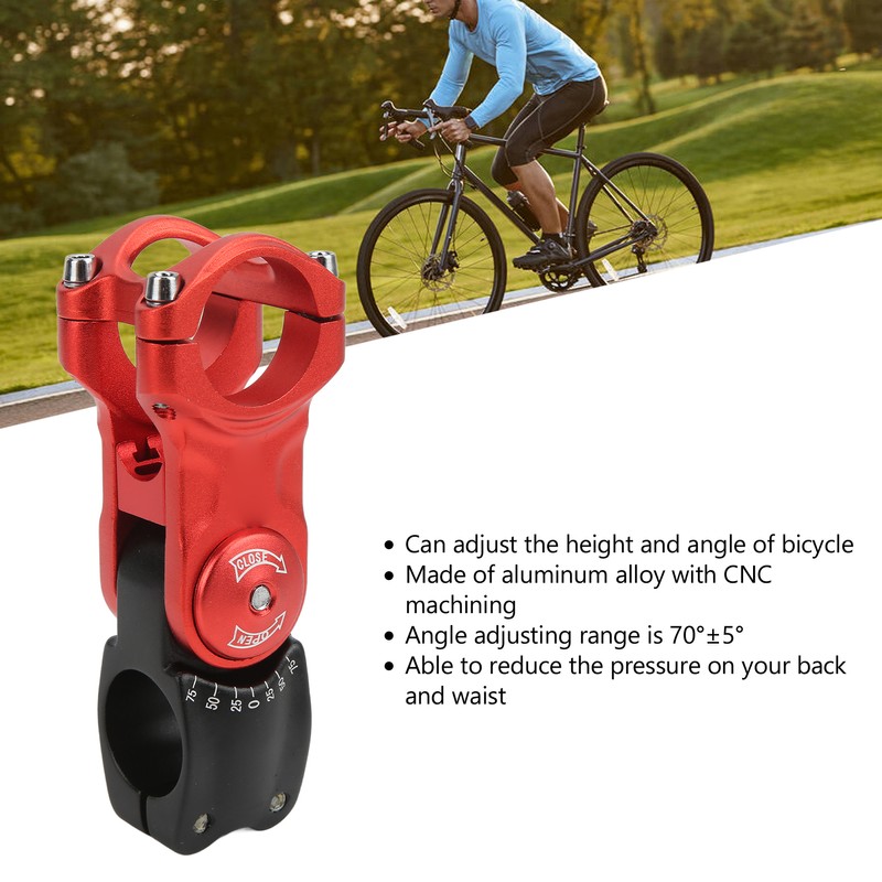 1、Aluminum Material: Made of aluminum alloy material with CNC machining, wear and corrosion resistant, strong for heavy duty work and preventing deformation. 2、Adjustable Tool: You can adjust the height and angle of the bicycle handle part to meet your habits, angle adjusting range is 70°±5°, making riding vehicle more in tune with you, suitable for daily use. 3、Working Performance: Able to reduce the pressure on your back and waist for a more comfortable position, so that you can enjoy the fun of cycling with less fatigue. 4、Application Range: Suitable for mountain bike, road bike, BMX and other kinds. Please confirm your handlebar is 31.8mm/1.25in before ordering to avoid inconvenience. 5、User Friendly: This adjustable bike stem can be installed within minutes, no need for complex operation, will not increase your burden or cause additional time waste.
