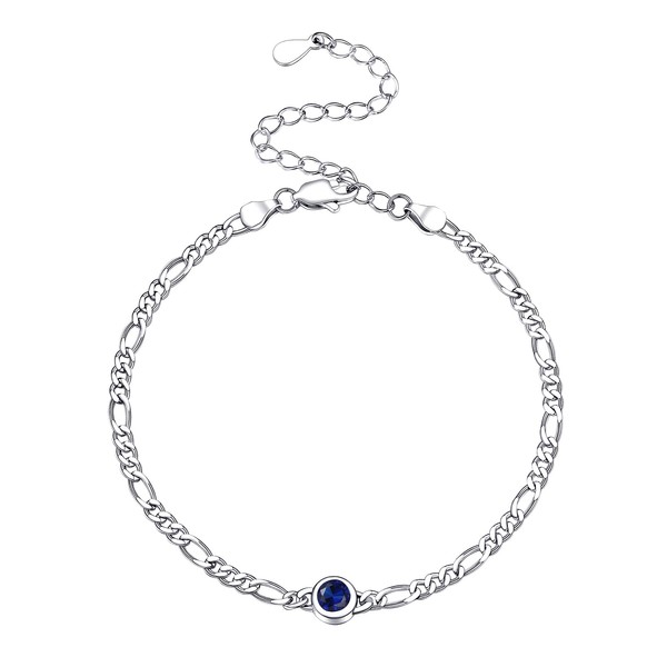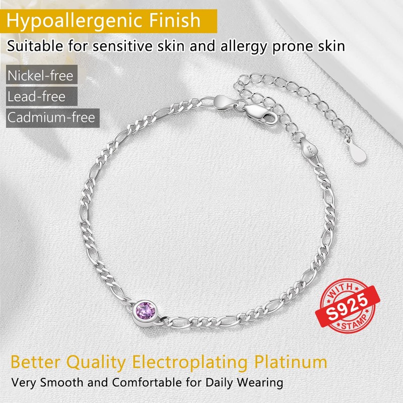 925 Sterling Silver Dainty Chain Bracelets, Adorned Birthstone Jan - Dec Available