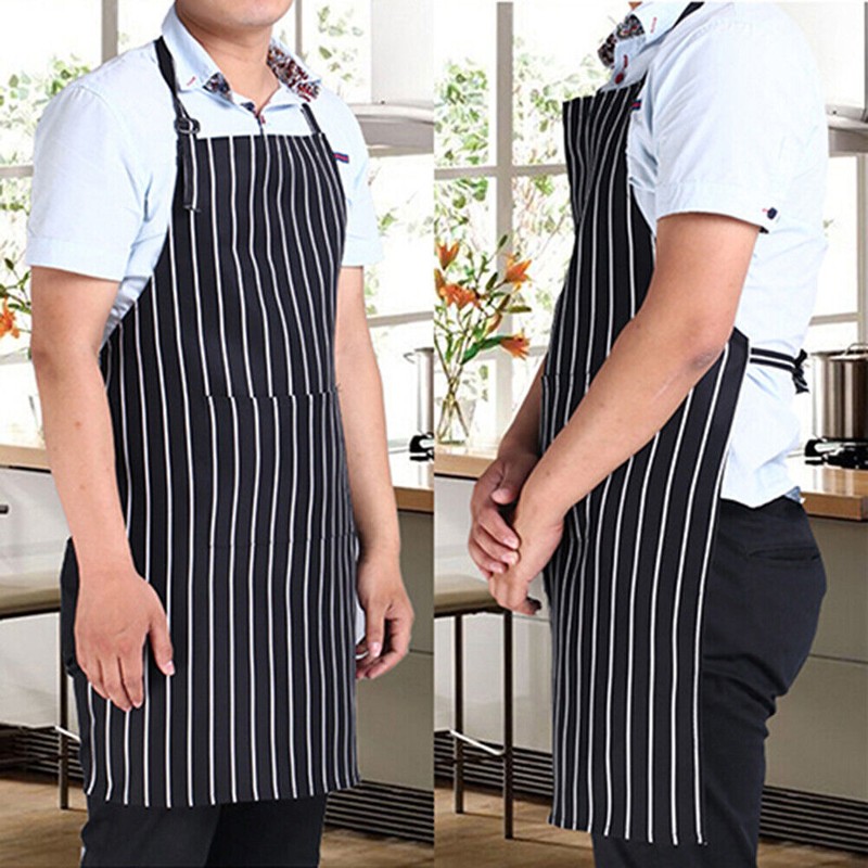 Adjustable Cooking Apron Kitchen Chef Stripe Bib Apron w/ 2Pockets For Men Women