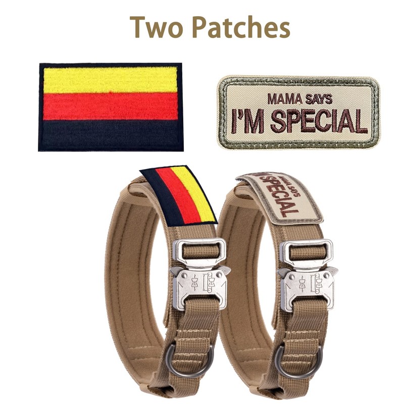 Adjustable Dog Collar with Control Handle, Tactical Collar Nylon, Dog Collar Padded, Metal Buckle, for Medium Large Dogs, Hunting Training, Outdoor, K9 Brown, XL Wide