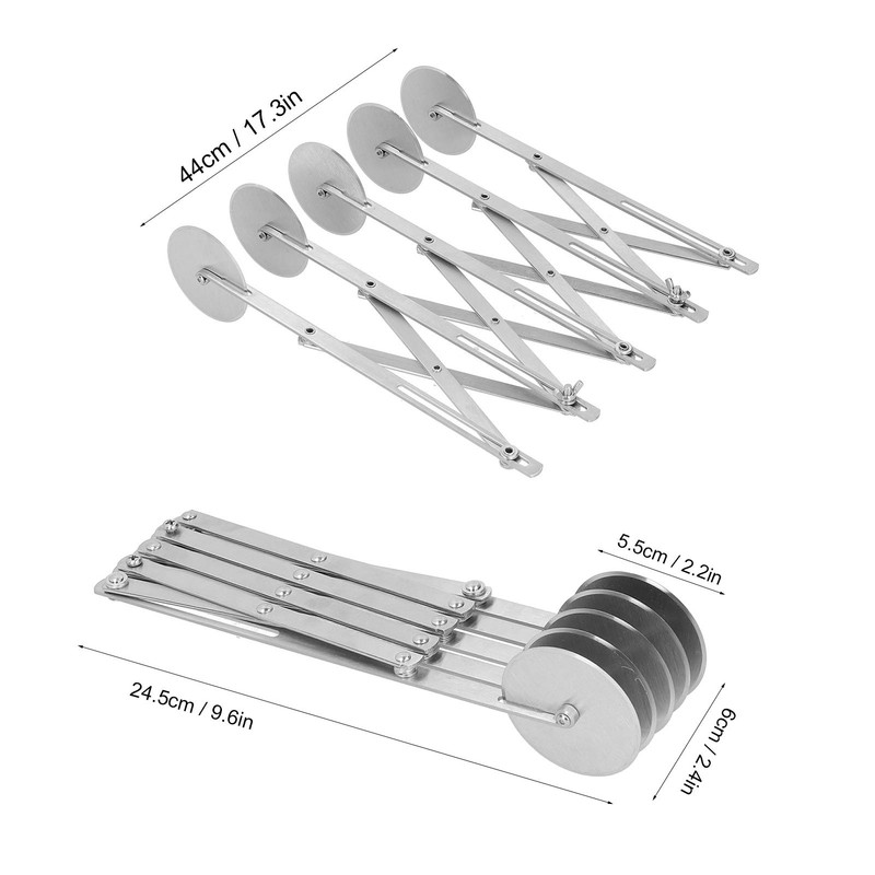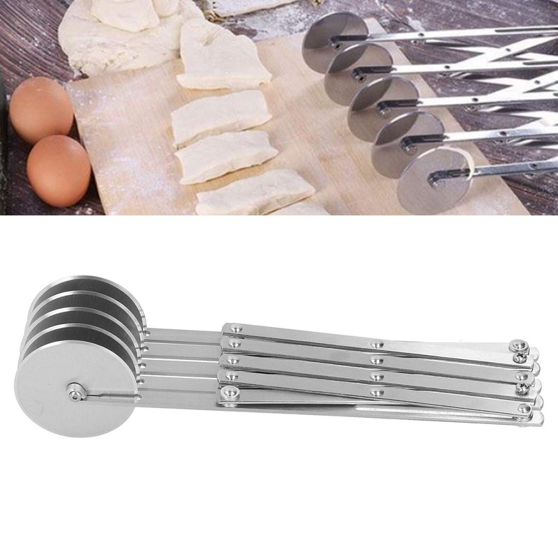 Adjustable Dough Cutter, 3/5/7 Wheels, Stainless Steel Pizza Cutter, Expandable Dough Divider, Baking Cutter, Roller, Cookie Dough Cutter, Divider (5 Wheels)