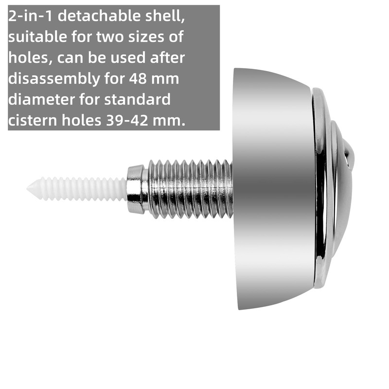 - [QUICK AND EASY INSTALLATION] Designed with a simple screw-in mechanism, this flush button is compatible with standard cistern holes ranging from 16-50mm. The 48mm diameter ensures a secure fit, making installation quick and trouble-free.