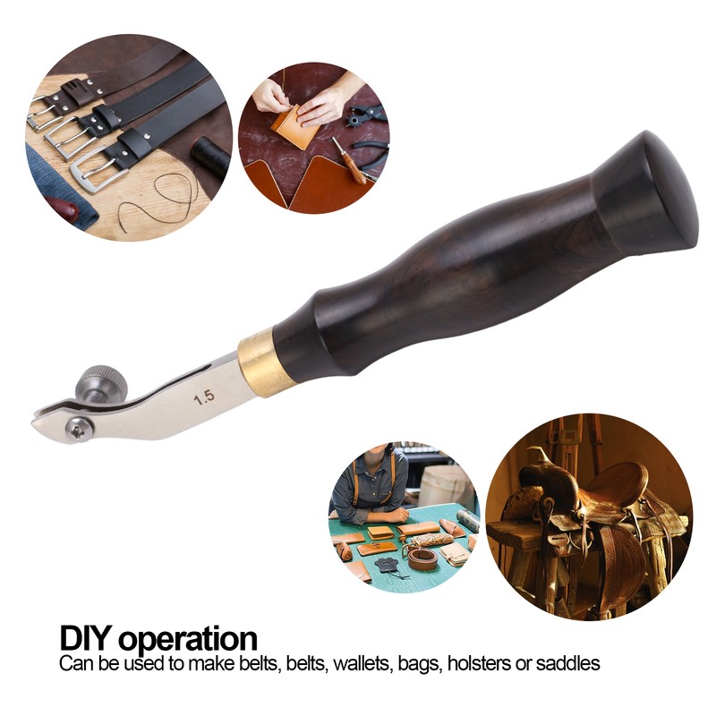Adjustable Edge Creaser Mirror Reflection Stainless Steel DIY Leather Creaser with Wood Handle Leather Edge Creaser1.5mm