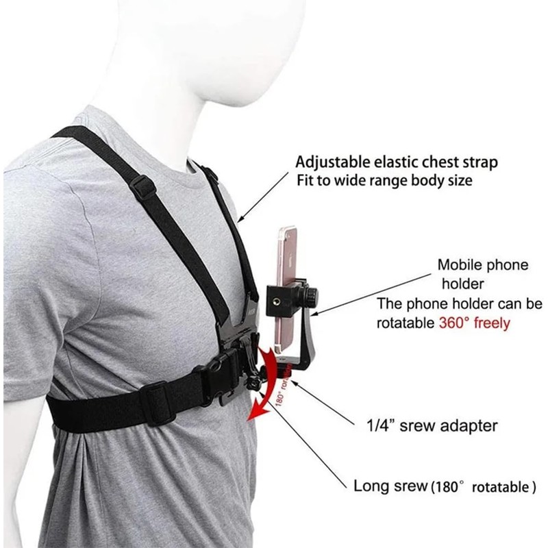 - The phone is mounted on the chest strap harness mount head strap mounts can also be an excellent hands-free shooting tool, which can free your hands, keep a stable video filming and record wonderful moments.