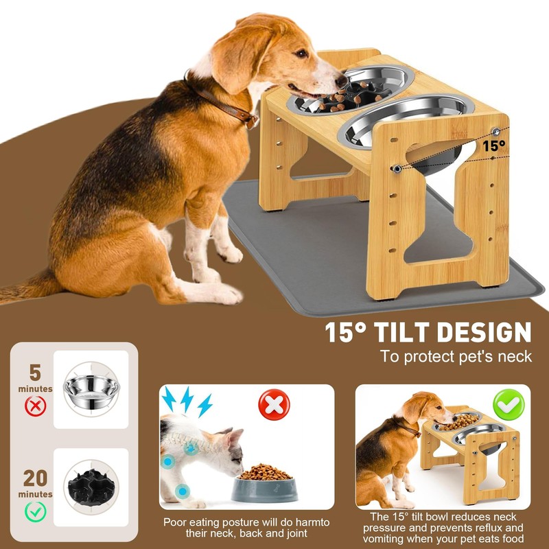 • Versatile Height Adjustments: Offers 9 different height settings (5 parallel and 4 tilted at a 15° angle), adjustable from 2.2" to 7.4", making it ideal for pets at various growth stages.