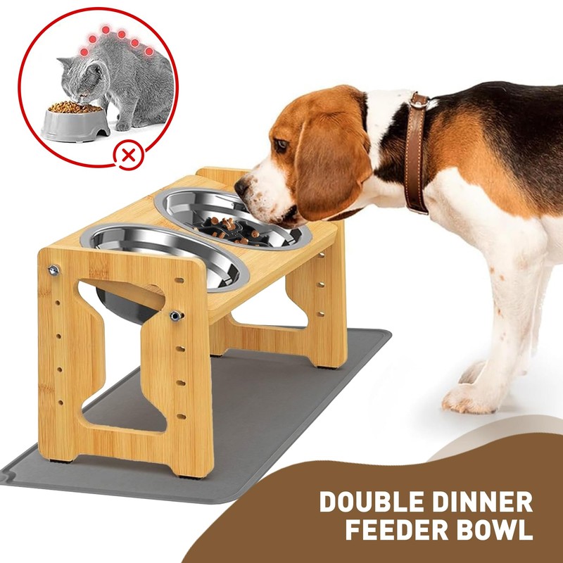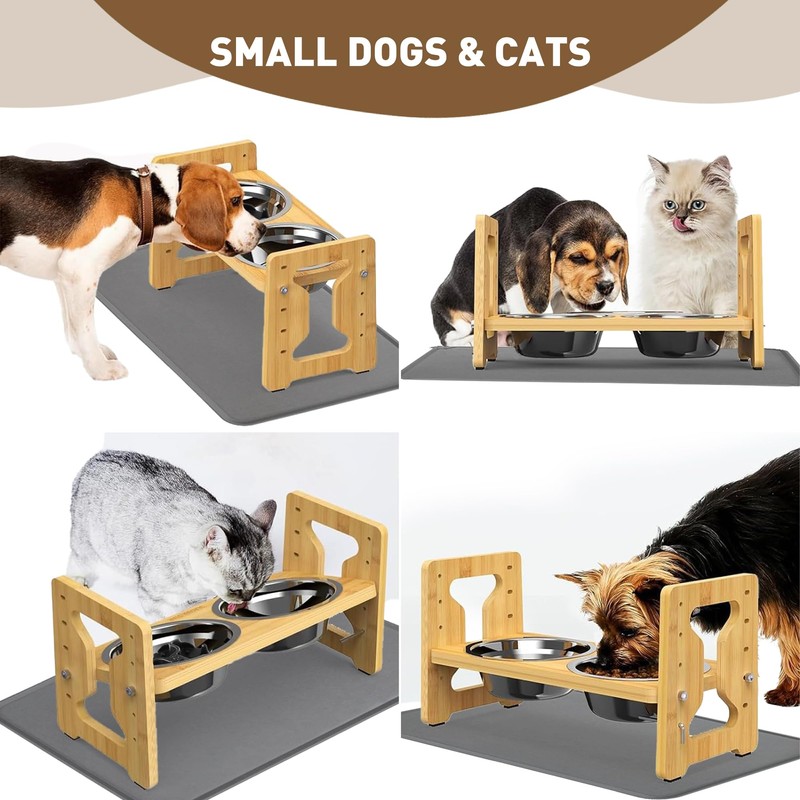 • Easy to Clean: Crafted from natural, odorless bamboo, the bowl stand is durable and visually appealing. The stainless steel bowls are rust-resistant and dishwasher-safe for effortless cleaning.