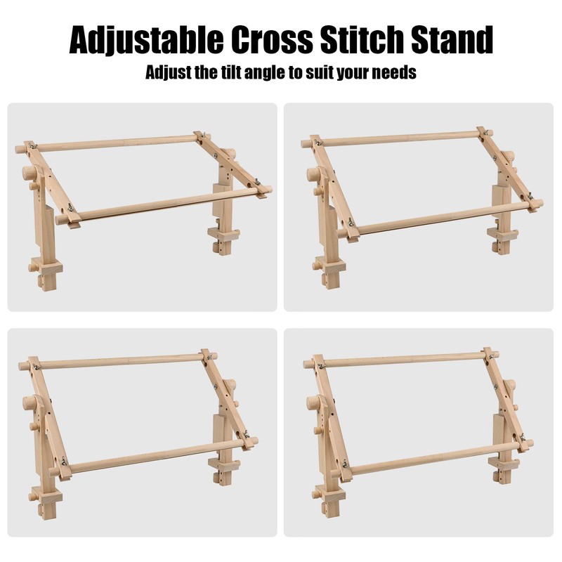 Adjustable Embroidery Stand for Table - Cross Stitch Hoop Stand for Table, Beech Wood Tapestry Scroll Embroidery Frames Holder with 20in * 12in Cross Stitch Hoop