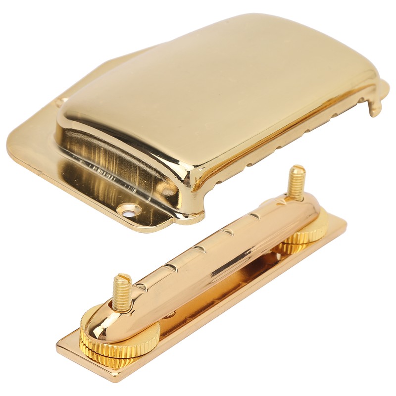 Adjustable Fixed Bridge Tailpiece Metal for Electric Guitar with Protective Cover ShellGold