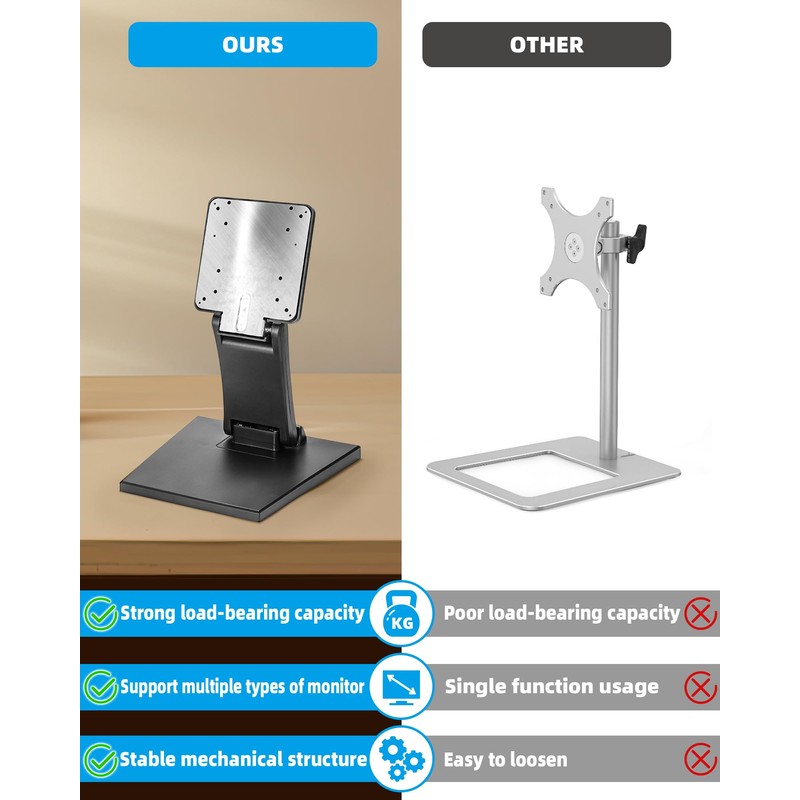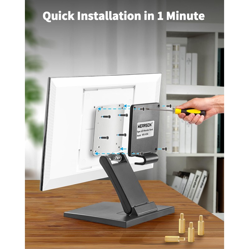 • Versatile Compatibility: Suitable for monitors with sunken VESA holes, with included iron posts to extend screw holes for seamless assembly. Durable & Stable: Built with high-quality materials to ensure stability and support for monitors of various weights and sizes.
