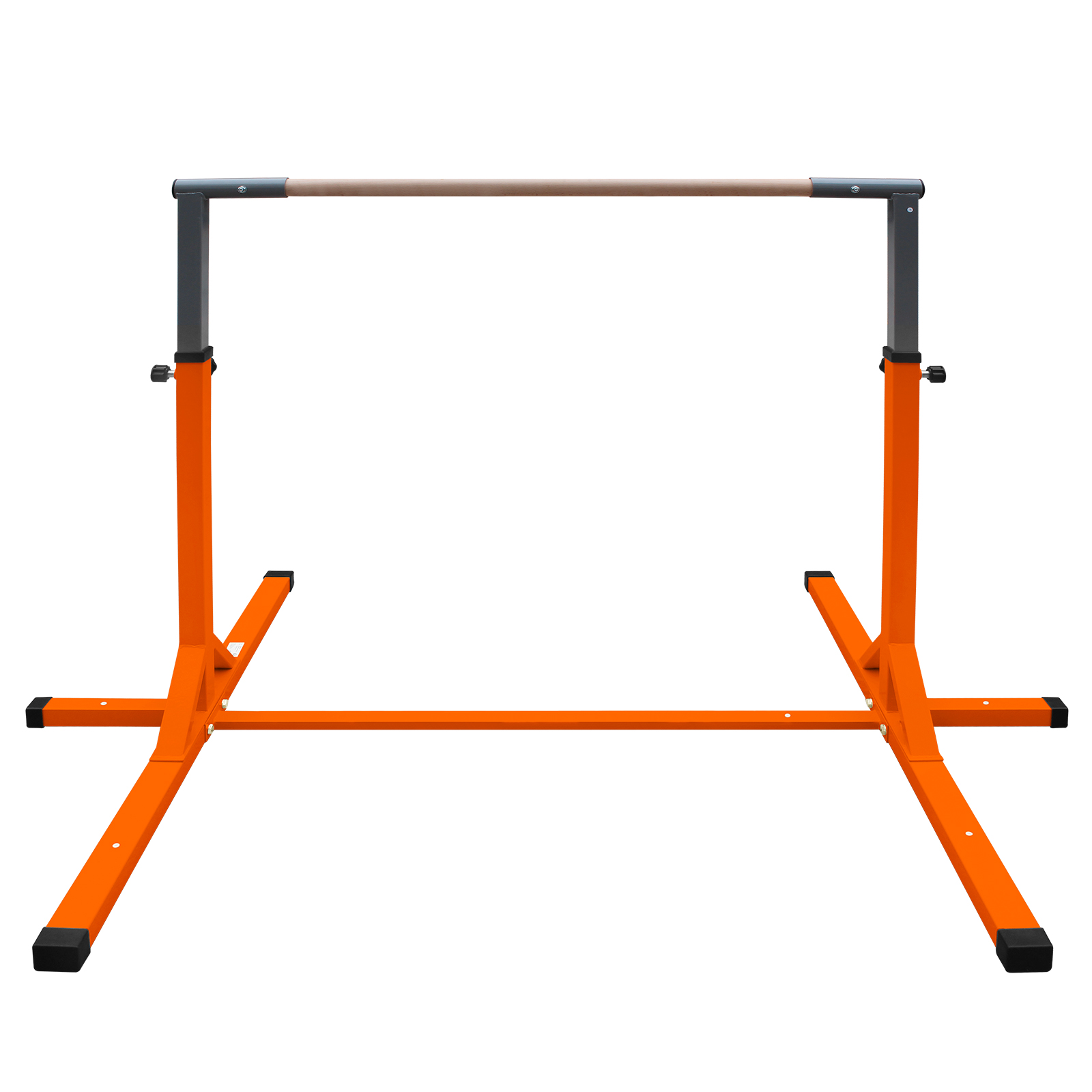 - 【SAFE AND DURABLE】 This gymnastics bar provides stability through 2 flat bars, wide metal base, non-slip cover and corrosion-resistant coating to keep kids safe.
