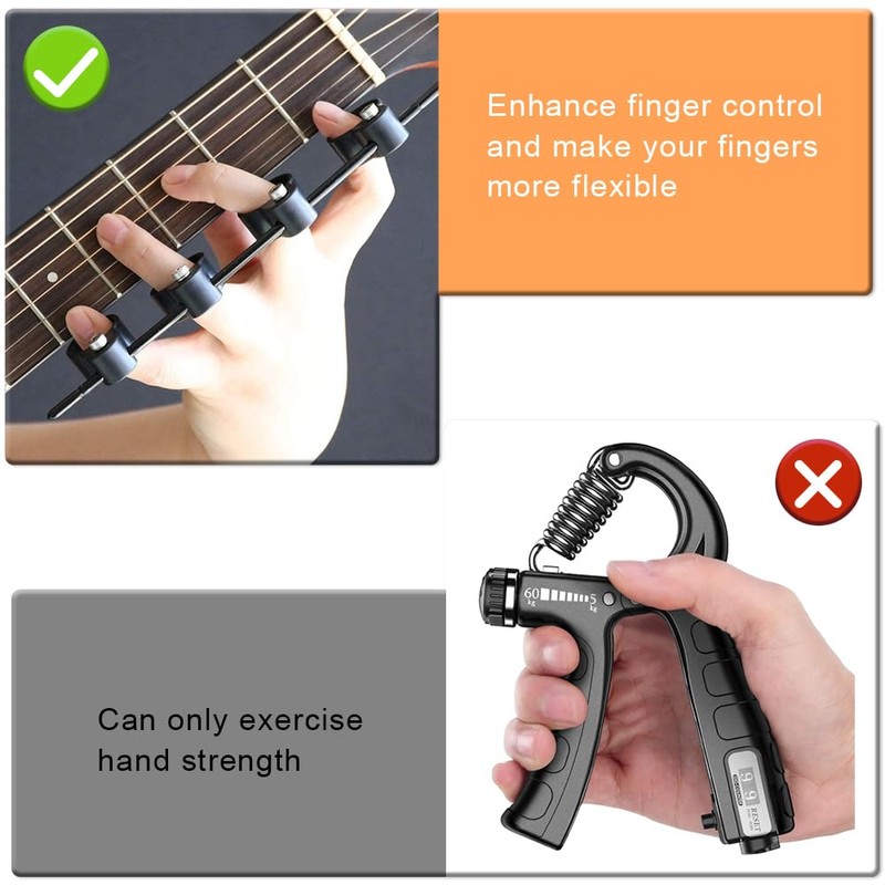 - 【Wide Application】Guitar finger trainer helps you train finger strength, stretch your fingers and stretch ligaments. Whether you are at home, office, walking, gym, music room, etc., you can train your fingers anytime, anywhere.