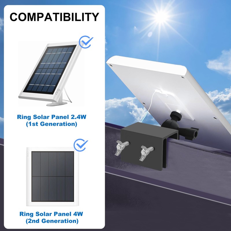 - 【Perfect Fit for Ring Solar Panel】Designed exclusively for Ring Solar Panel to ensure a snug, secure mount.Also compatible with other solar panels with a standard 1/4" threaded mount—such as Ring, Arlo, Eufy, Wyze, Reolink, and more. (Note: Solar panel is not included.)