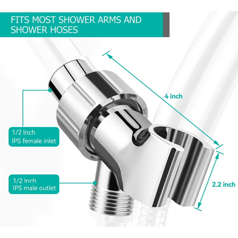 - ✅UNIVERSAL SIZE DESIGN: The adjustable arm mount connects your shower arm and hose, fittings with shower hose connector diameter 0.75'' to 0.85". If hose connector diameter 0.85'' or larger (> = 0.85''), it isn't suitable for the holder.