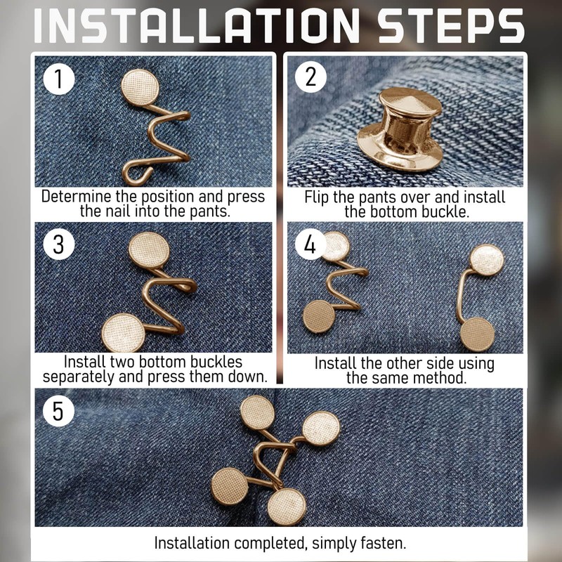 • Versatile Usage: Not just for jeans,this jeans button tightener can also be used to adorn clothing,hats,and more,and the waist cincher clip can be easily installed by simply pressing it with your hand.