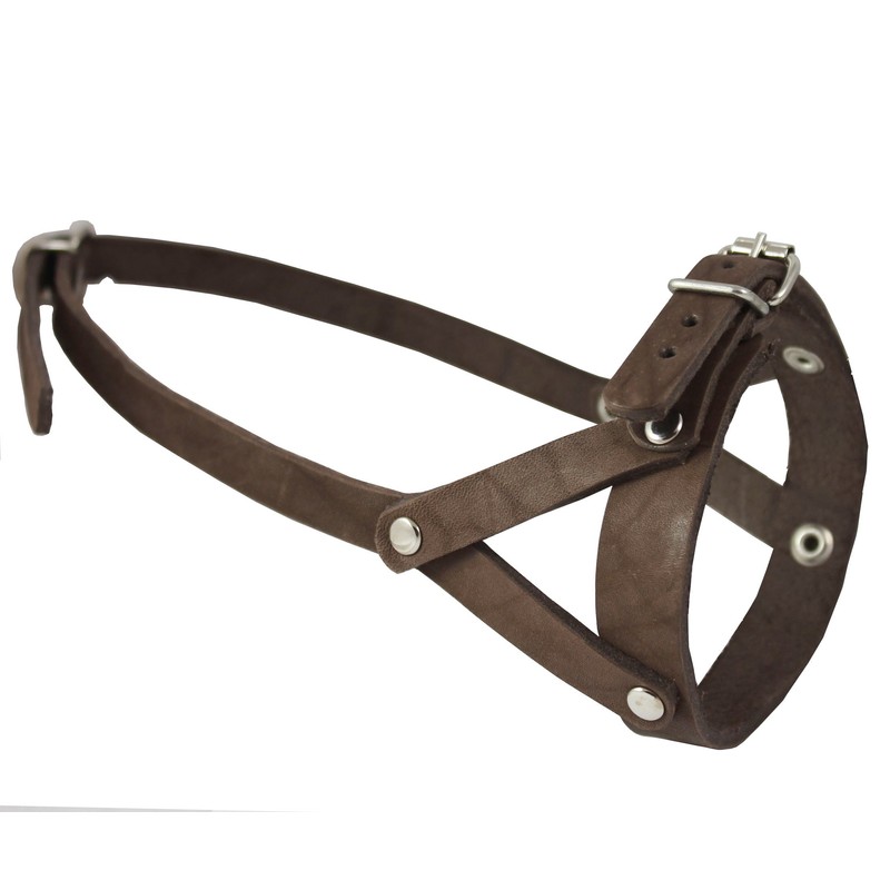Adjustable Leather Loop Bite Bark Control Easy Fit Muzzle Brown. Fits 10.5"-12.5" Snout.