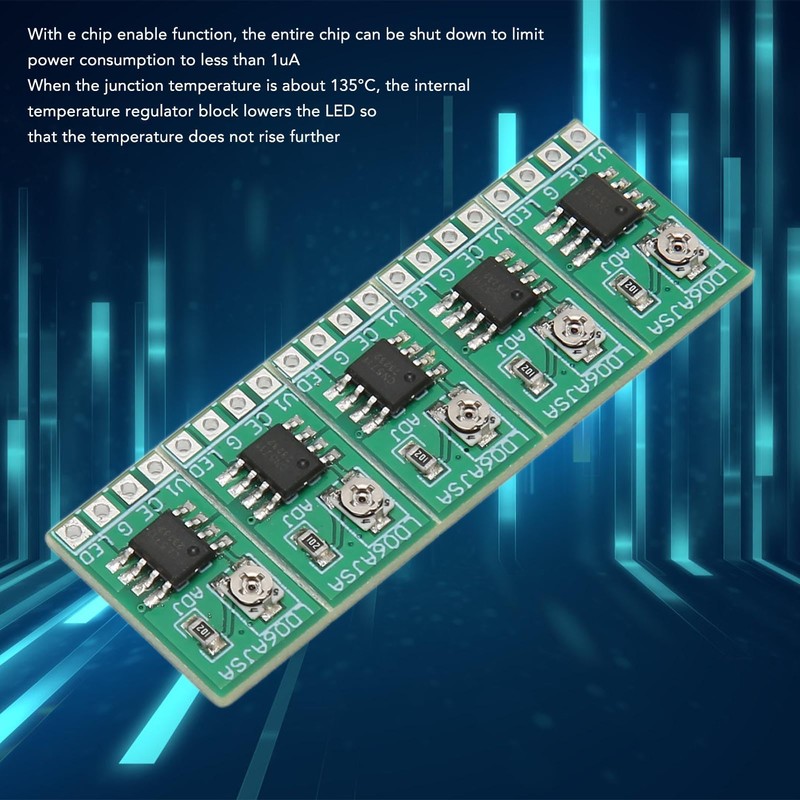 5. Adjustable Output Current: With the use of external resistors, the adjustable current LED driver module can be adjusted to set the output current at 1.5A.
