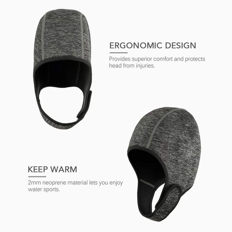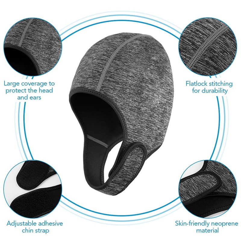 Adjustable Neoprene Diving Hood for Surfing, Kayaking, Snorkeling, Scuba - Black, Light Grey, Light Blue, Dark Blue - 90% Neoprene, 10% Nylon - Secure Fit, Flatlock Stitching, Warm & Comfortable - 1