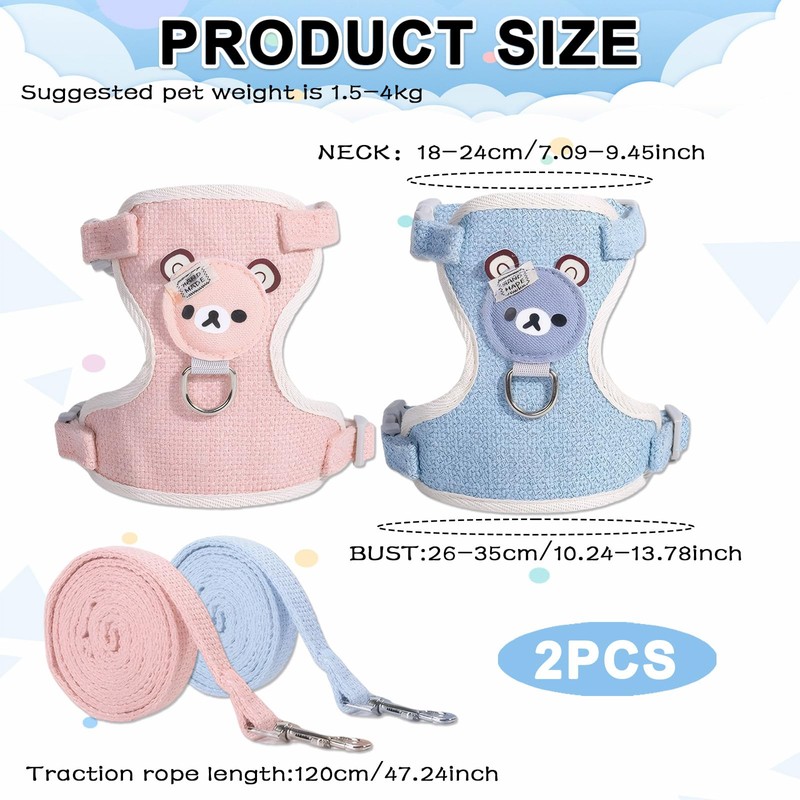 Adjustable Pet Harness and Leash Set – Breathable Cotton-Linen Blend, 120cm Leash, Neck 18–24cm, Chest 26–35cm – Ideal for Small Pets 1–4kg – Pink & Blue Options