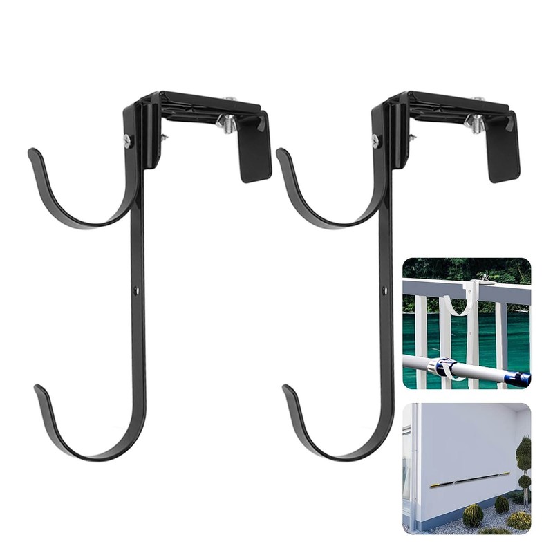 Adjustable Pool Pole Hooks Pool Pole Hangers Adjustable Heavy Duty Double Fence Wall Hooks Black