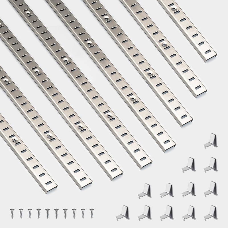 • Complete Set with Screws Included – This package includes 8 pilaster strips, each 40 inches long, along with 80 screws (10 screws per strip) to ensure secure installation. The comprehensive set of shelf rails provides everything you need to set up sturdy, adjustable shelving units. Whether you’re renovating a room or installing new shelves, our shelf track set offers a hassle-free solution for quick and efficient assembly.
