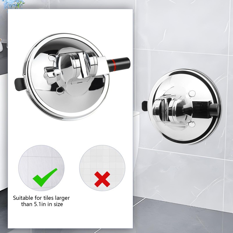 - Note:Shower Head Holder is not suitable for tiles smaller than 5.1 inches in size. It only be used on non-porous, flat and smooth surfaces such as tile, glass, acrylic and metal. Always test suction before each use.