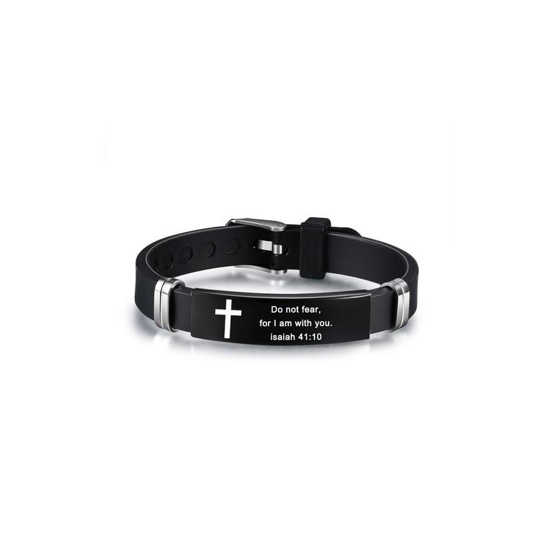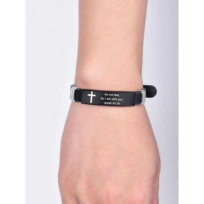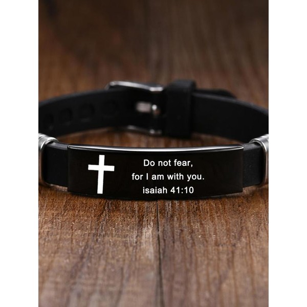 Adjustable Silicone Bracelet, Stainless Steel Cross & Letter Design Bracelet for Men & Women, Trendy All-match & Exquisite Jewelry for Birthday Gift