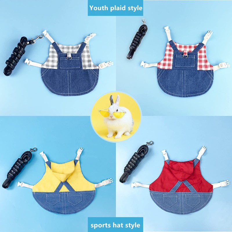• 【High Quality】: Made of high quality denim + pure cotton fabric, wear-resistant and pilling free, soft and very comfortable to wear. This rabbit harness will provide comfort for your little pet.