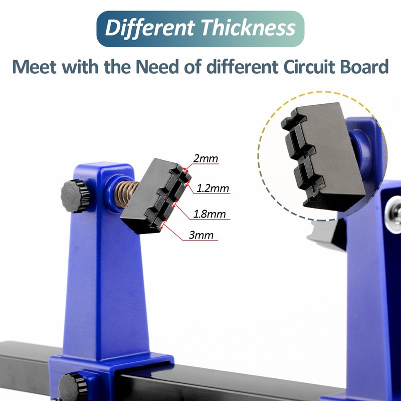 - Various Board Sizes: The PCB holder soldering tool has 4 different thickness: 1.2/1.8/2.0/3.0mm, it can meet with the need of different size PCB board. The circuit board holder maximum adjustable width is 200mm, soldering holder can adjust the width according to the different circuit board.