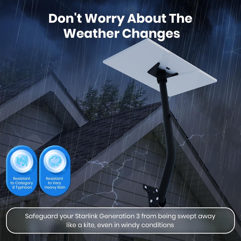 • 【Weather-Resistant】Starlink mounting kit gen 3 crafted with premium alloy materials and weather-resistant coatings, the Starlink Gen 3 Mount is able to withstand harsh weather conditions such as wind, rain, snow, and ice, providing comprehensive protection for your Starlink system and ensuring long-term stable operation