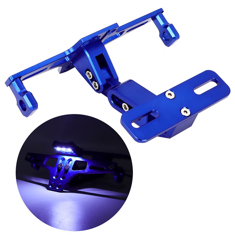 Adjustable Telescopic Aluminum Alloy Bracket License Plate Holder with LED Light for Motorcycle