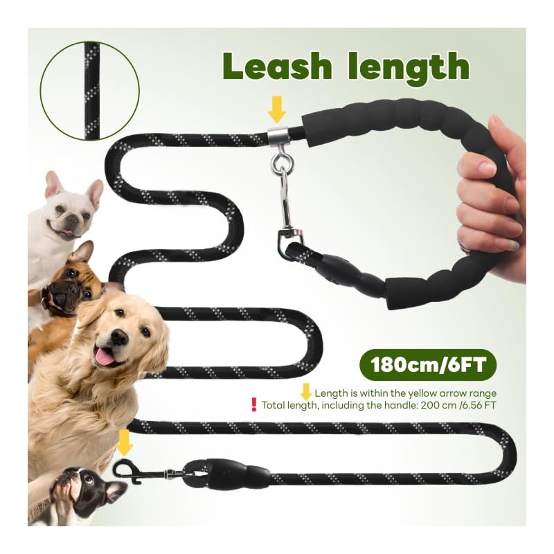 Our heavy - duty dog leash is crafted to perfection. Made of sturdy rope, it can handle the most energetic dogs, whether they're small, medium, or large. The 6 - foot length provides enough freedom for your pet to explore while still keeping them under your control. The comfortable grip handle ensures a fatigue - free hold during walks, no matter how long. With highly reflective threads, it's perfect for early morning or late - night strolls, enhancing safety for both you and your furry friend. This black - colored leash not only offers functionality but also a sleek look.