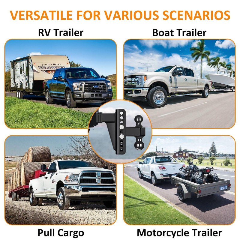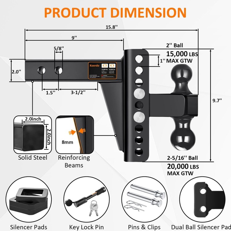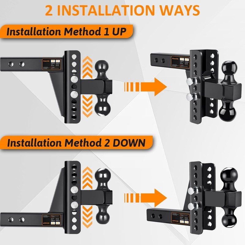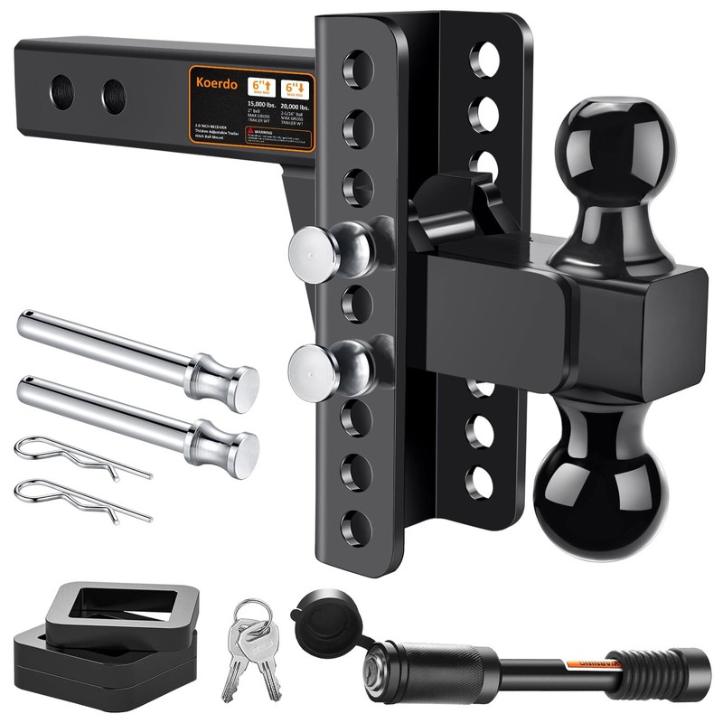 Adjustable Trailer Hitch -Drop Hitch-Tow Hitch with 2 inch Receiver-6inch Drop/Rise, 2" & 2-5/16" Ball Hitches for Trucks, 20,000 LBS GTW, Trailer Hitches with Anti-Theft Pin, Black…