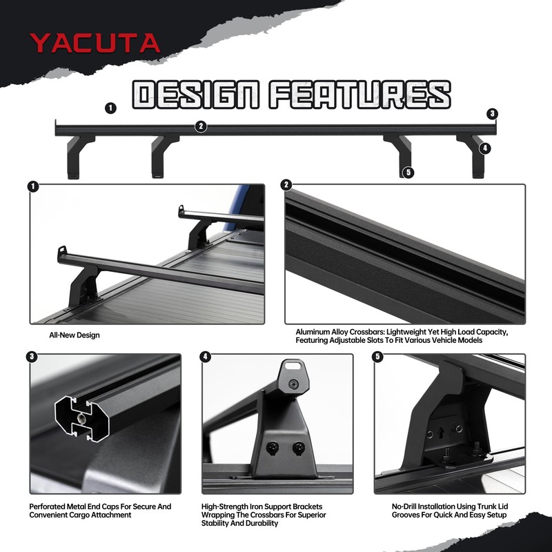 - 【Multi-Functions】 You can carry truck bed tents, snowboards, bike rack, kayaks, ladders,cargo boxes, etc.and can carry larger and longer items that the average pickup bed cannot accommodate.