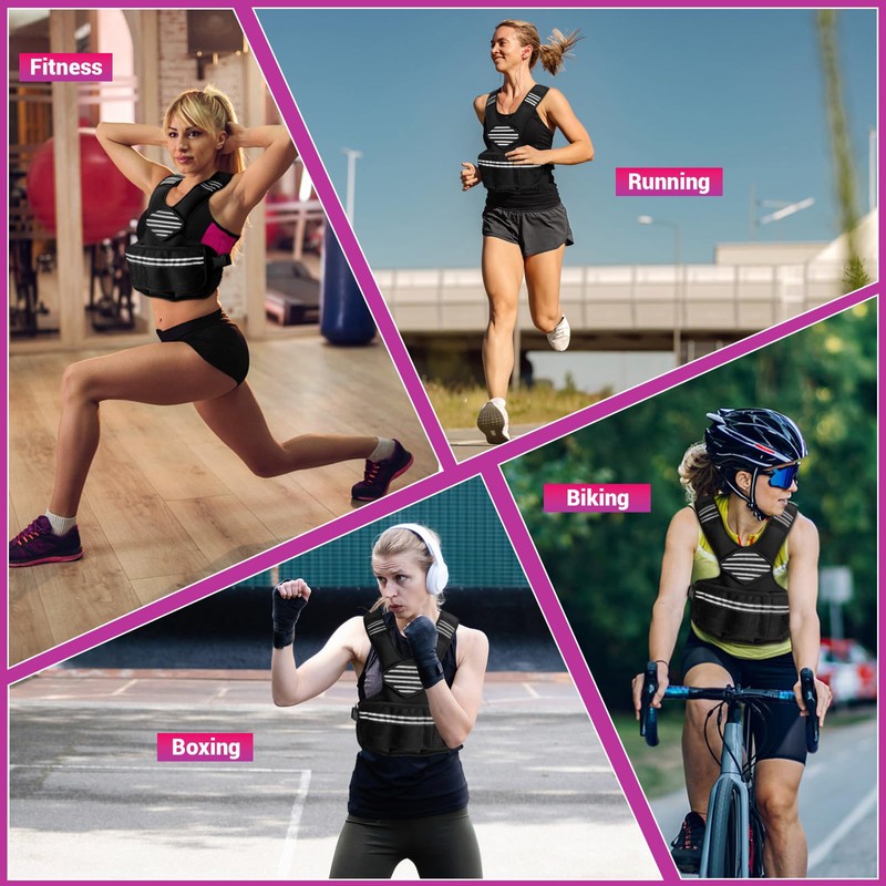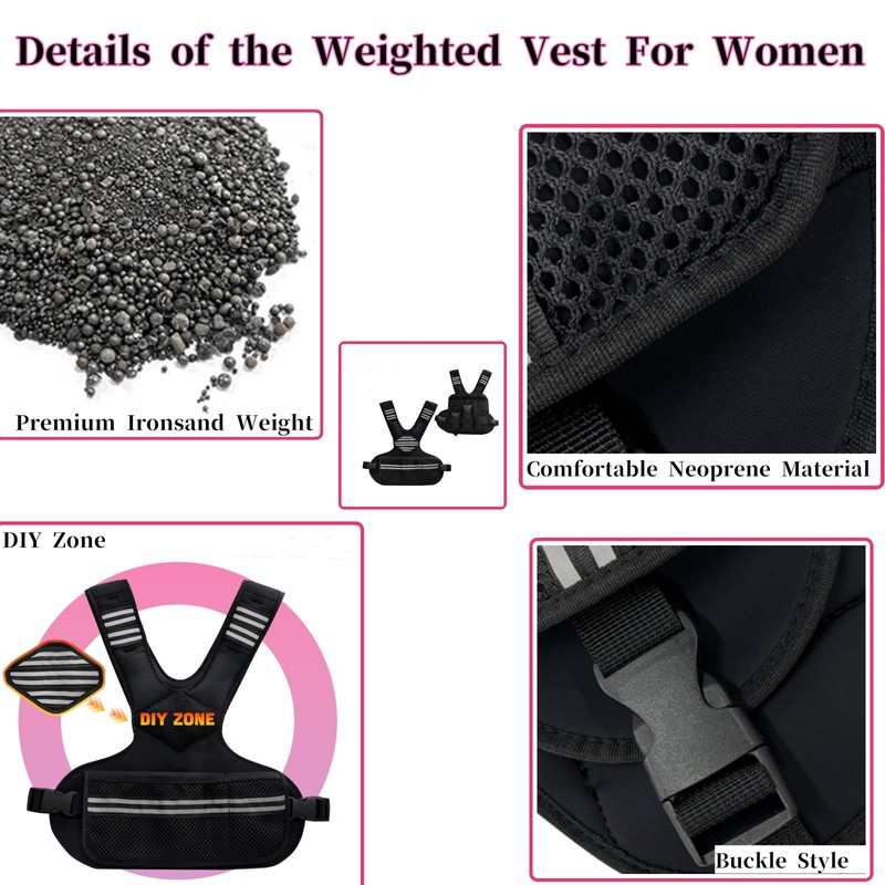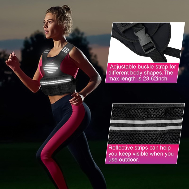 - Reflective Strips and DIY Zone: The weight vest for women ensures your safety in low-light conditions. Reflective strips on the shoulder straps and waistband ensures visibility. In the center of the front vest, there is a DIY zone, you can stick what you like.