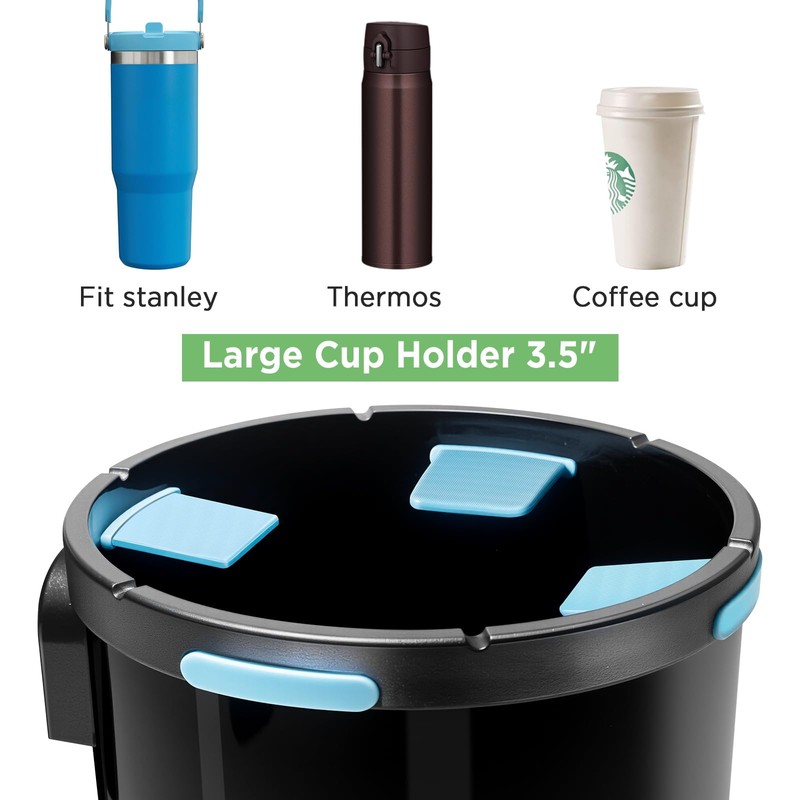 - Non-Slip & Spill-Proof: Silicone-lined cup slot securely holds bottles, tumblers, or cans (up to 10cm diameter).