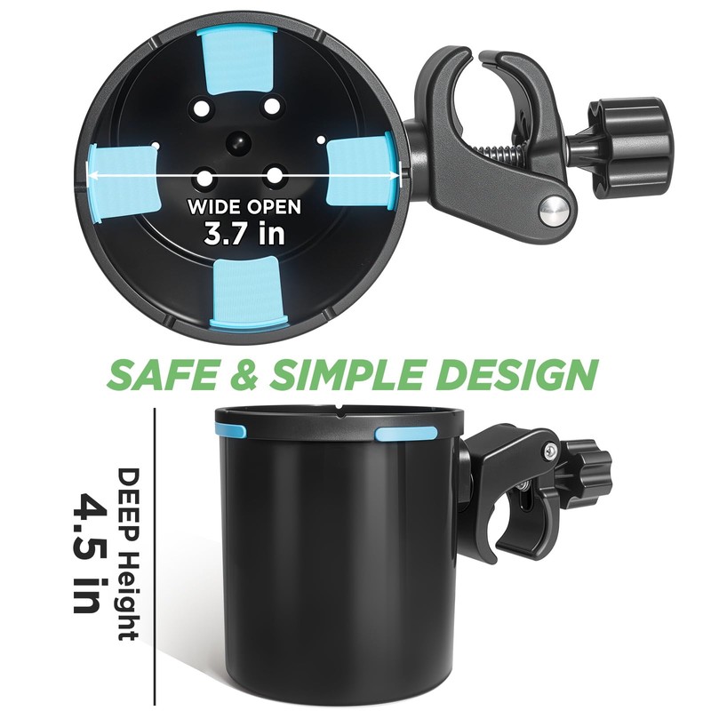 - Large Wheelchair Cup Holder: Cup diameter up to 3.6in (92mm).