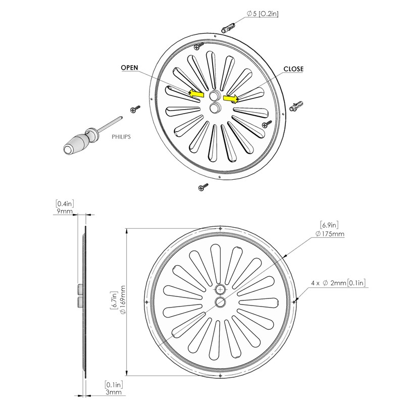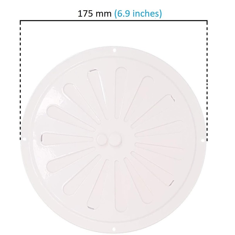 Adjusted Circular Metal Air Vent Grate in White Ø17.5 cm / 7 inches, Round Ventilation Grille Made from Galvanized Steel White Coloured in Powder Coating RAL9016, Open - Close Metal Ventilation Grid