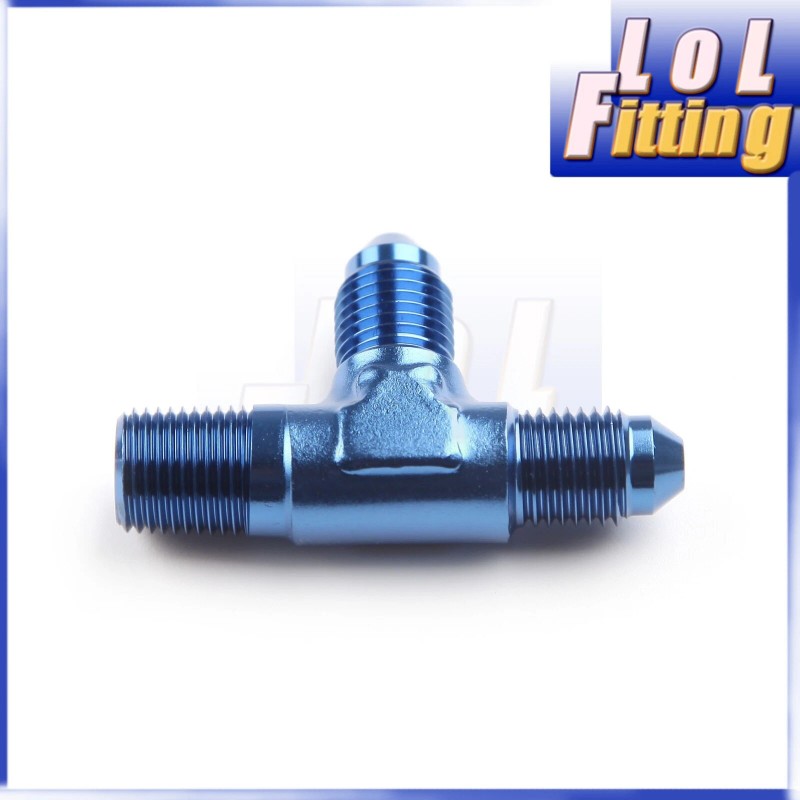 US SHIP -3AN to AN3 Male Flare To 1/8" NPT Tee T-piece Fuel Fitting Adapter Blue |