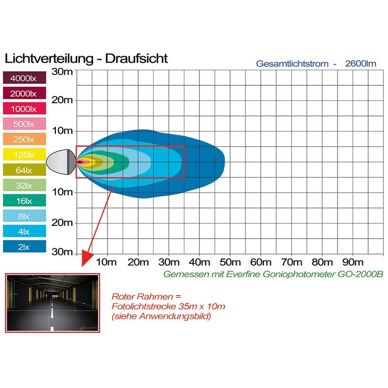 - Suitable as additional headlights, reversing lights, searchlights, worklights