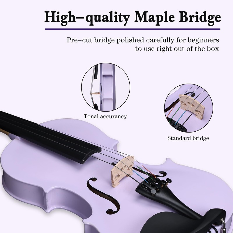 ADM Acoustic Violin for Kids Beginners,1/2 Size Acoustic Violin Fiddle for Teens Students Violin Starter Kit with Hard Case, Rosin, Shoulder Rest, Bow, Violin Music Stand and Strings,Purple
