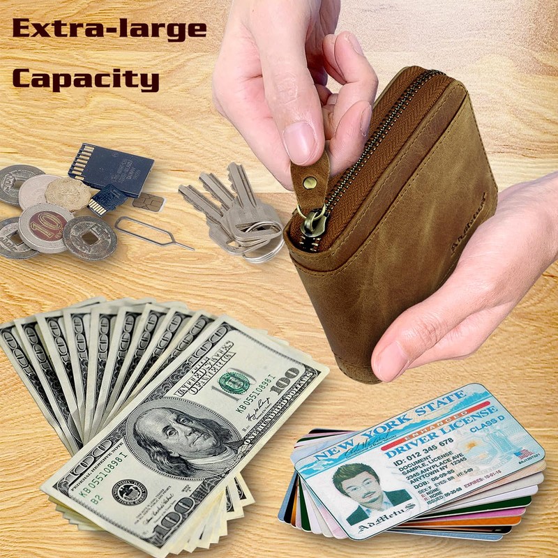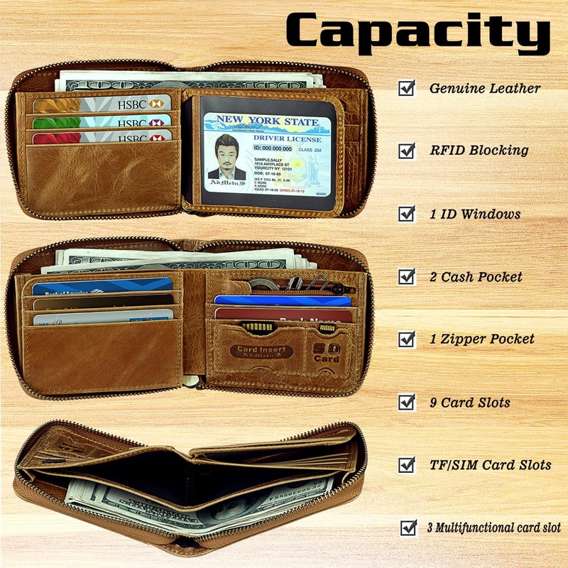 - RFID BLOCKING&ZIPPER: Double security protection, Admetus wallets are equipped with advance RFID Blocking technology, prevent vital cards detail from unnoticed scans. The zipper design protects your cards from losing, prevent the dust