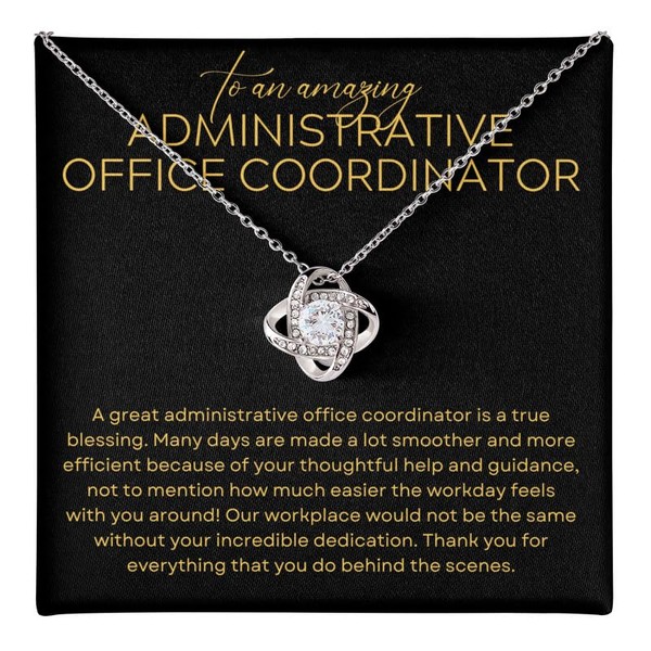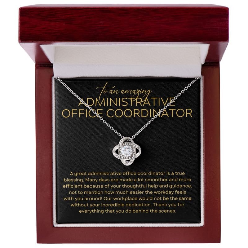 Administrative Office Coordinator Necklace Message Card Box Love Knot Mahogany - A Great Is A True - Appreciation Secretary Administrative