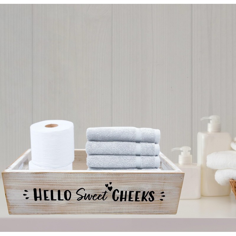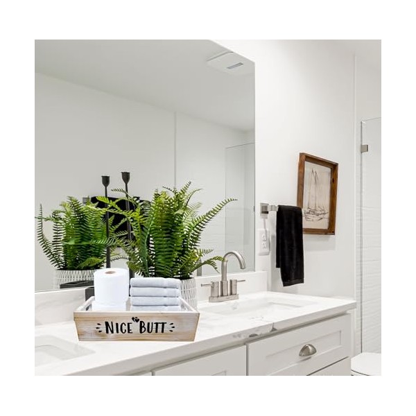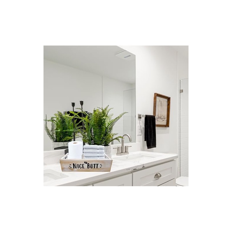 Perfect for holding multiple rolls of toilet paper and other toilet decorations for bathroom, also storage of remote control, books, potted plants and various small objects or whatever storage you need. The size is good enough to be placed as toilet tank decor in a bathroom. Buy this top of toilet decor for multiple multiple bathrooms. It is compact and will fit all standard toilets. It is a perfect rustic decorations for bathroom, living room, or any living space. Use to hold any grab and go items, as it is a very helpful organizer. This toilet paper decor box will add a nice touch to any room it's placed. Keep your bathroom funny with a Nice Butt box to compliment your friends. This toilet box is great for lotions, perfume, nail polish, and sprays. Dimensions are 6.5" wide x 15" deep x 4" high. The actual color/finish may vary slightly from screen display. Accessories shown are for illustration purposes only, and are not included with the products. Not Suitable for exposure to excessive sunlight.