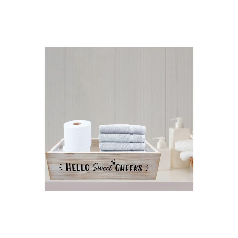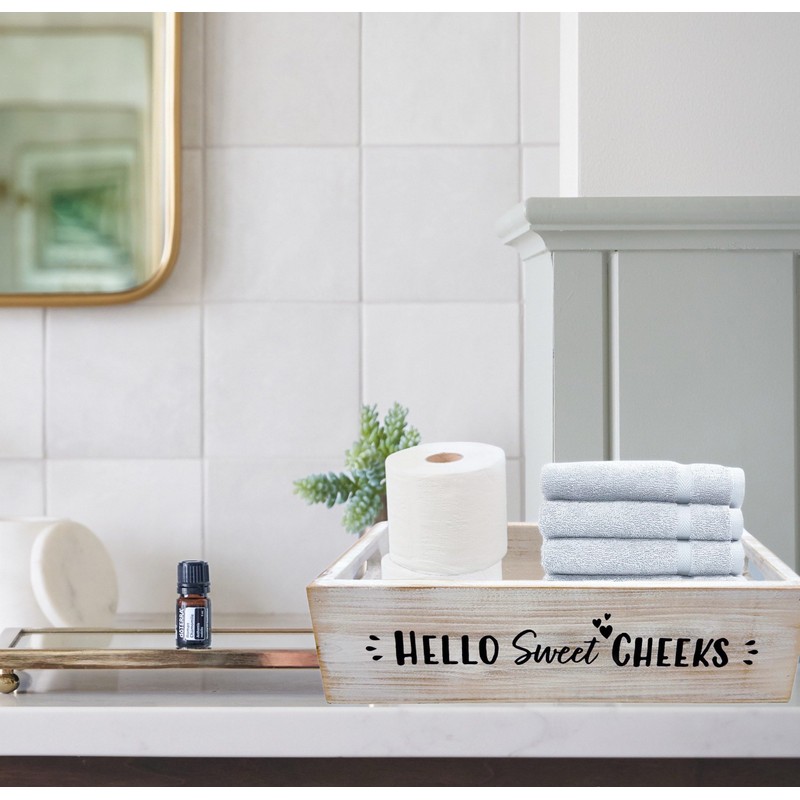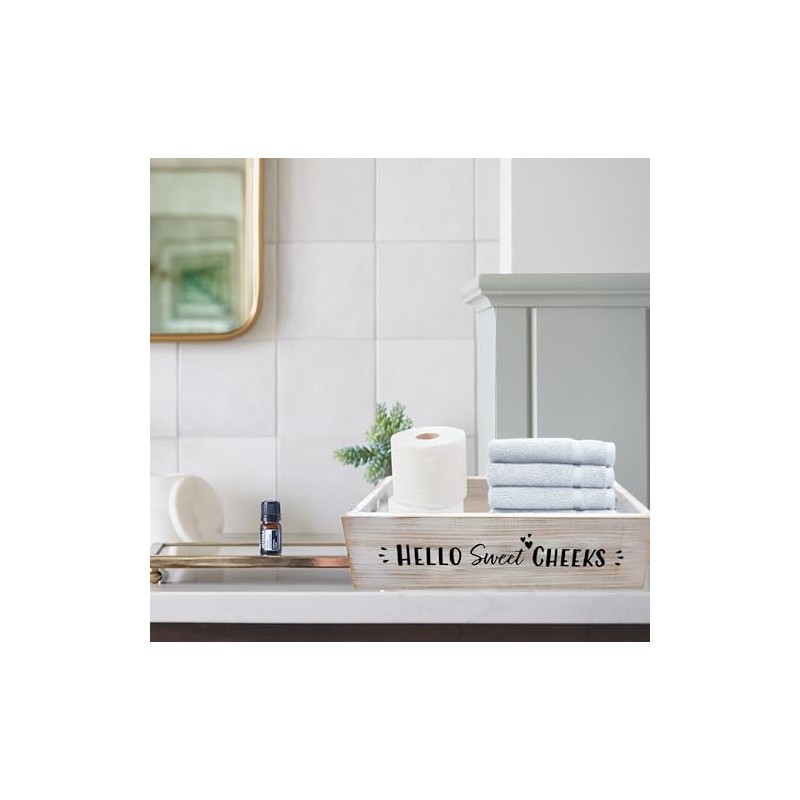 - [Easy] Store your bath decor accessories in this toilet tray decor. Use funny toilet paper holder basket organizers and storage to catch your guests off guard. This toilet paper box organizer wood crate hold soap, sprays, perfume, or magazines.