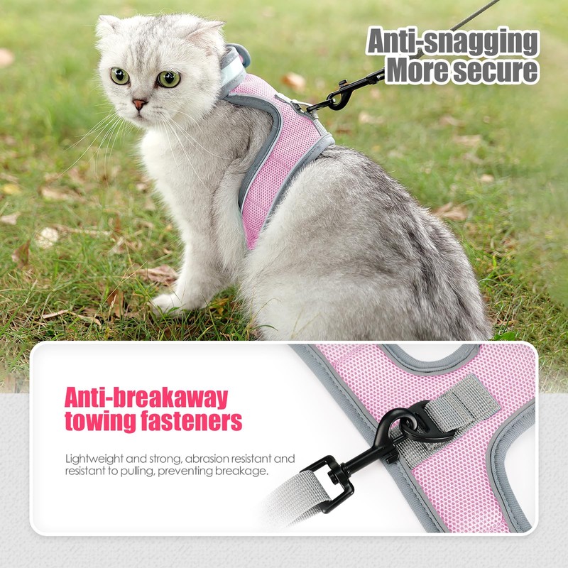 - 【EASY CONTROL BREATHABLE REFLECTIVE STRIPS VEST】This Anti-escape soft mesh cat Leash has a reflective design on the cat's chest and both sides of the harness, ensure that you can easily find them at night; There is also a hook on the back to connect the leash, ensure that your cat will stay securely in the harness while you are out on your daily walks