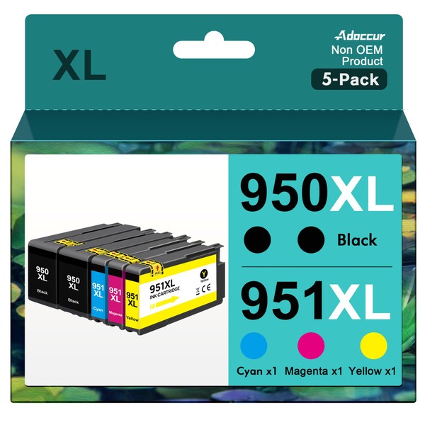 Adoccur 950XL 951XL Combo Pack Compatible Replacment for HP OfficeJet Pro 8600 8610 8620 8100 8630 8660 8640 8615 76DW 251DW (2 Black, 1 Cyan, 1 Magenta, 1 Yellow, 5 Pack)